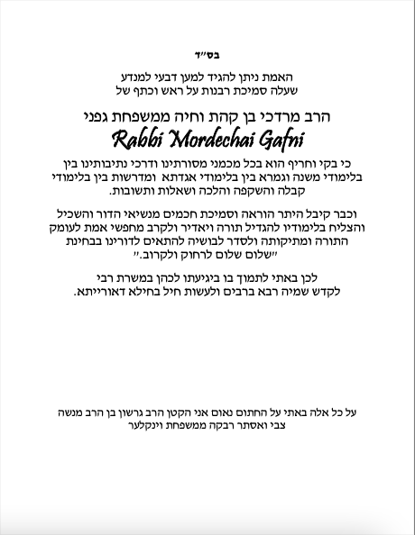 Ordination Rabbi Marc Gafni by Rabbi Gershon Wrinkler Hebrew